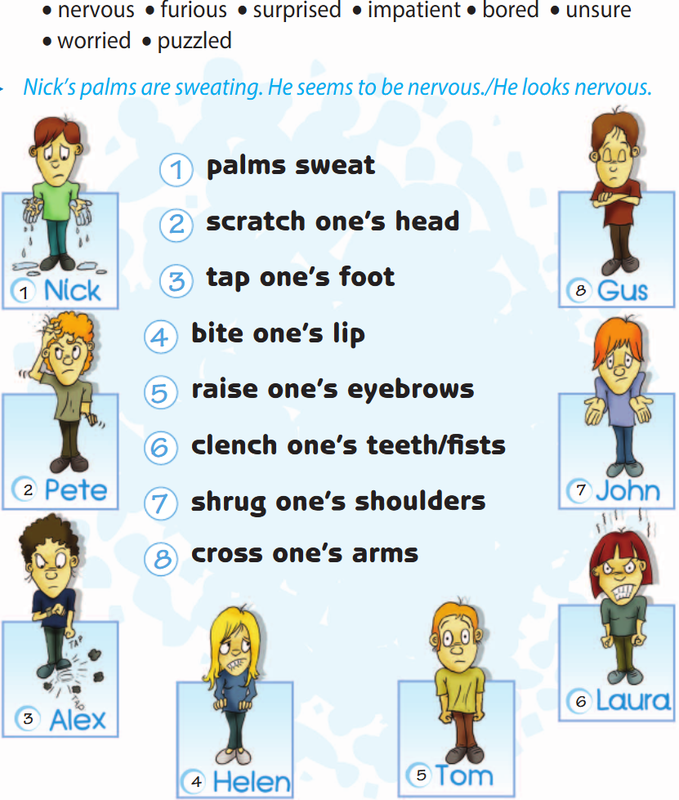 | 7. Fill in the gaps with the correct adjective to talk about body language | ![]() |